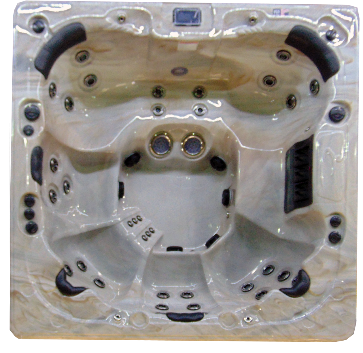 92” x 92” x 39”425 GallonsIlluminated Fountain JetsIlluminated DivertersReverse Pull Neck JetsElectrical 220v/60aPumps Palm Island II - 2 - 56 Frame 7.0Pumps Palm Island III - 3 - 56 Frame 6.0Illuminated Weir DoorFiltration System Size 100 ft2Weight: Dry / Filled (approx.)900 lbs. / 4300 lbs.