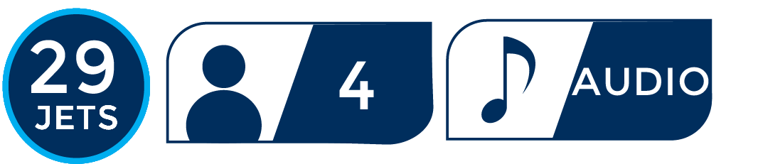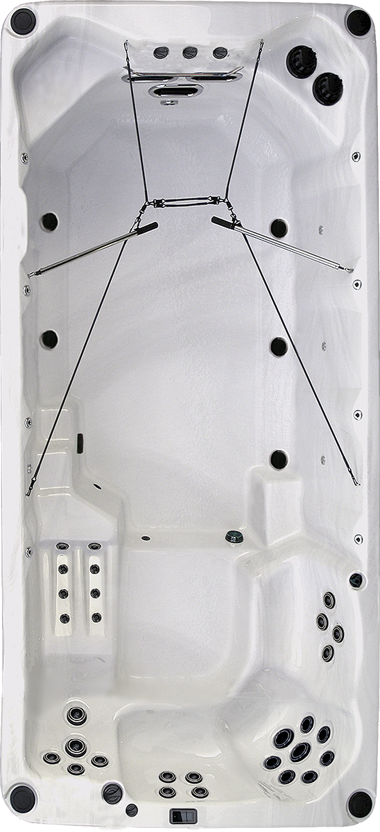 92" x 192" x 60"1 850 gallons3 Jets de rivière illuminés8 Jets de fontaine illuminés Jets illuminésSystème audio In.Stream avec 4 - 4" Haut-parleurs de qualité marine Électrique 220v/60aPompes 3 - 5.0bhp Pompe 1 - 7.0bhp Taille du système de filtration 100 ft2Exercice / Rowing & Swim TetherSwim Coach - Entraînement multi-programmablePoids : sec/rempli (environ) 2 700 lb. / 19 300 livres.