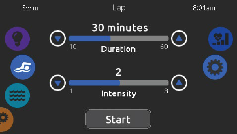 Select drills, set durations, intensities and more with the touch of a finger on an interface designed for swimmers.